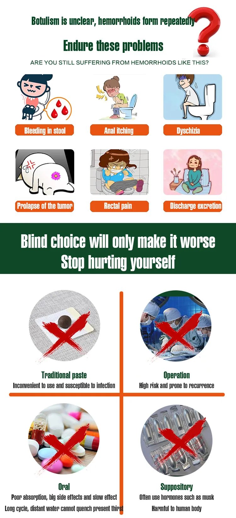 - No recurrence: After using a certain course of treatment, internal and external hemorrhoids will never recur, and the inconvenience and pain caused by hemorrhoids will be kept away forever.